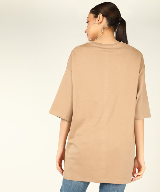 C K Women's Unisex OverSize Printed T.Shirts_(Beige)