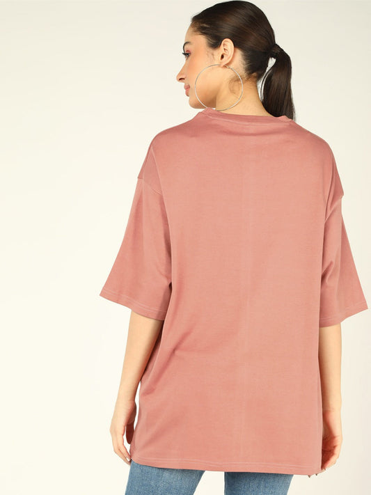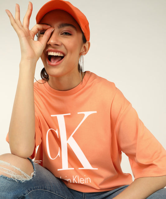 C K Women's Unisex OverSize Printed T.Shirts_(Salmon)