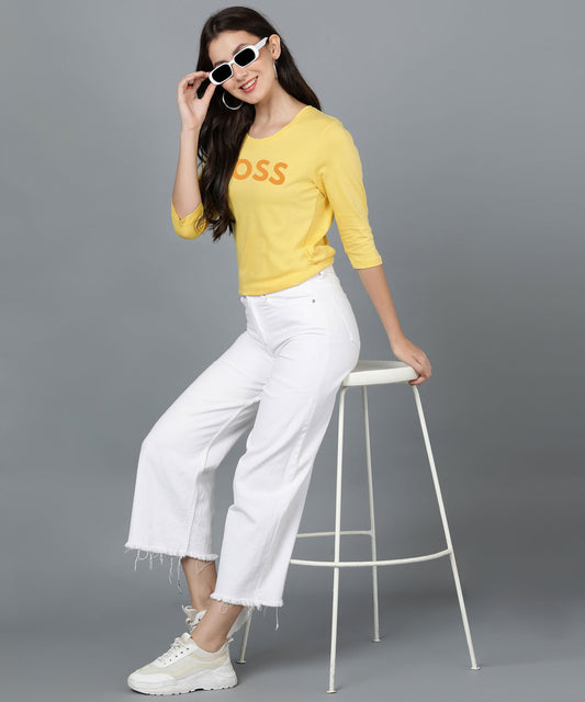 Women 3/4 Sleeve B O S S Printed T-shirt